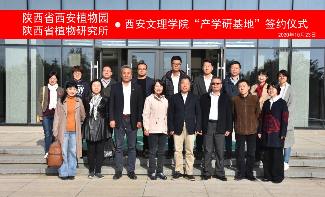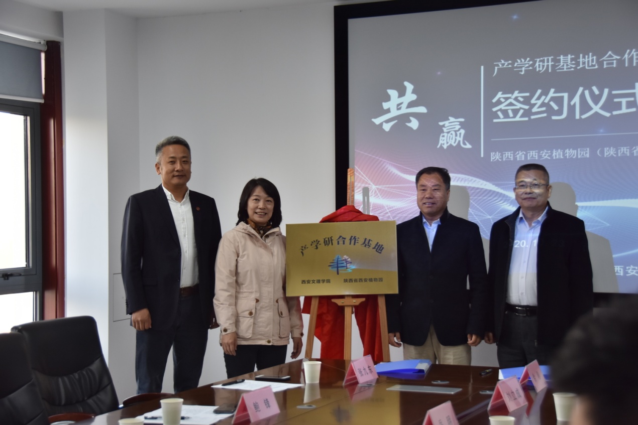 随后,陕西省西安植物园主任岳明与西安文理学院生物与环境工程学院院长鲍锋代表双方单位共同签署了《陕西省西安植物园(陕西省植物研究所)西安文理学院“产学研基地合作协议”》,陕西省科学院副院长李保国与西安文理学院副校长邬连东共同为基地揭牌。