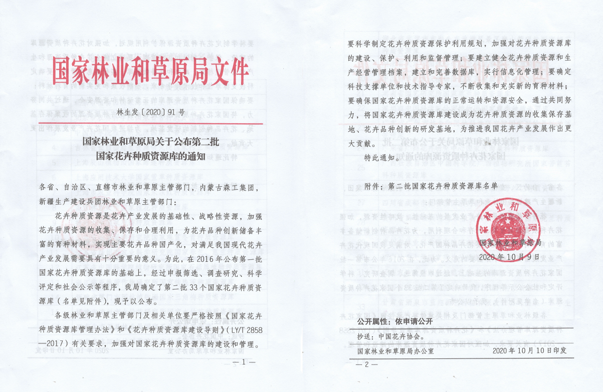陕西省西安植物园获批第二批国家花卉种质资源库相关文件