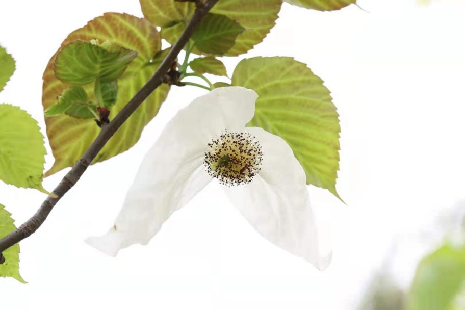 园区工作人员在定植和管护过程中,发现部分珍稀濒危植物已进入花期,正在绽放,具体包括珙桐,连香树及白辛树等。