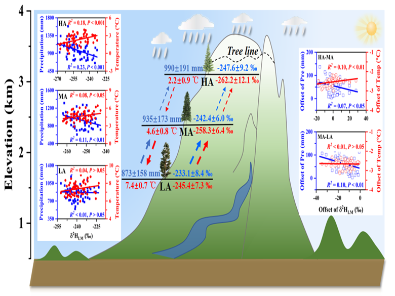 图3 太白山海拔梯度树轮δ2HLM比率指示水热变化的海拔依赖性(图片:文章)