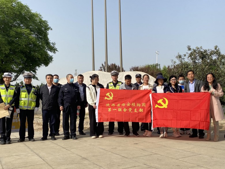 集中学习后,四个支部所有党员在陕西省西安植物园西大门门口开展了以“春季守护行动”为主题的交通安全宣传活动并进行合影。随后,陕西省西安植物园工作人员带领各支部全体党员参观学习植物园。