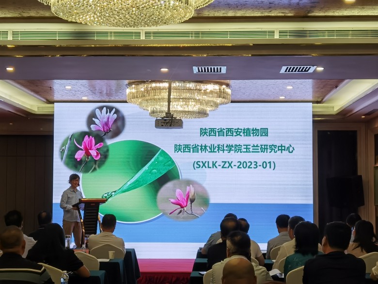 2023年7月14日陕西省林业科学院召开陕西省林业科学院试验示范基地(站)、研究中心工作会议。根据《陕西省林业科学院科技创新试验示范基地(站)、研究中心管理办法(试行)》(陕林科发〔2020〕37号)文件精神,经院长办公会研究决定,遴选和建立第四批科研试验示范基地(站)、研究中心,陕西省西安植物园成为陕西省林业科学院玉兰研究中心。我园岳明主任、木本育种团队负责人王亚玲研究员、樊璐副研究员参加了此次授牌活动,王亚玲向与会专家介绍了“玉兰研究中心”的研究进展和研究成果。
