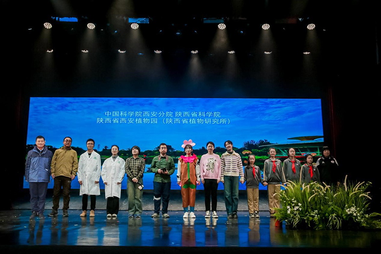 12月19日是第二批剧目展演日,我园原创科普短剧《消失百年的冬日精灵》主创参演人员有张宇军、王琪、王雅婧、谢斌、路强强、王妍雯、司鹏宏、杨璐瑶、陈娇、商慧颖和远东实验小学5名师生等??破站绻?span lang="EN-US">5幕:美丽的报春精灵、初见的故事、再现秦岭山脉、消失百年重新绽放古城西安、科研助力野化回归。剧情展示了珍稀濒危植物陕西羽叶报春从发现、灭绝再到重现的传奇历程,我园科研人员为?;ど挛饔鹨侗ù?,从引种驯化到野化回归所做出的不懈努力。通过对陕西羽叶报春引种繁育和迁地保护的方式在西安植物园内成功进行扩繁,并在此基础上组织开展陕西羽叶报春的野外回归试验,全力保护濒危植物生存。展现了60多年来,植物园人心怀“国之大者”,秉承科学家精神,立足国家发展和地方需求,全心投身生态文明建设,在生物多样性研究保护与利用、园林园艺技术研究与推广、植物科学普及等方面长期坚守、默默奋斗,切实守护好秦岭生态空间的一山一水、一草一木。