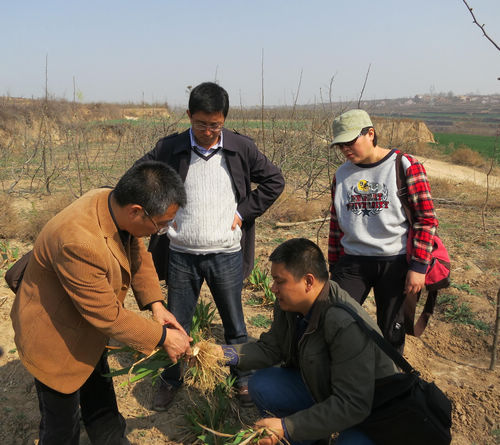 2014年3月26日,分省院科技处孙凯处长和齐凡老师一同到我园鸢尾研究基地检查指导工作,我园科技科高书宝科长、项目组成员黎斌副研究员和韩桂军助理研究员陪同检查。先后检查了乾县和高陵两个基地和我园新园区鸢尾的种植情况,检查期间,孙处长询问了适合发展的地区和鸢尾种植和栽培技术、投入产出及以后产品销路情况,同时要求项目还需要补充必要的数据资料。齐凡老师要求把项目的成果技术打包,为以后的生产推广做好技术积累。