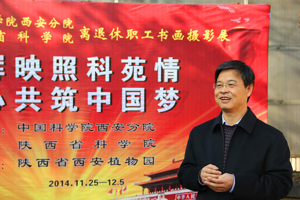 11月25日,由中国科学院西安分院、陕西省科学院主办、西安植物园承办的“霞辉映照科苑情,同心共筑中国梦”离退休职工书画摄影展在西安植物园书画摄影厅正式开幕??皇缴?,陕西省科学院副院长陈改学致辞,他对本次参展作品表示高度肯定并祝愿活动圆满成功完成。