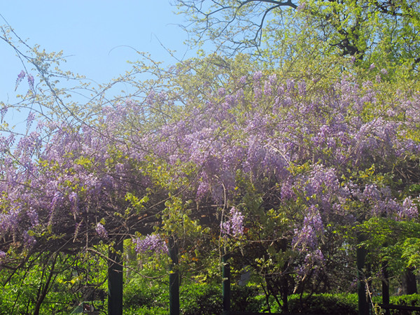 不过,紫藤花的花期短,最佳观赏花期只有二到三星期,本周末植物园的紫藤进入最佳观赏期。