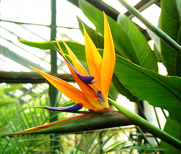说了这么多,估计很多人都想跃跃欲试的想养一盆了。其实,养护也不难,注意几个要点:一、光照。鹤望兰虽为喜光植物,但最怕夏季烈日暴晒,西安地区5月中旬-9月上旬要遮荫。二、水分。鹤望兰为发达的肉质根系,水分不宜多,以盆土保持略干为好。三、温度。18℃-30℃范围内生长最好,低于0℃有冻害。目前经过西安植物园科研人员的引种驯化,鹤望兰的根部能耐-5℃的低温。四、施肥。鹤望兰花期从10月到翌年5月,因此遵循花后“薄肥勤施”的原则,半月施肥一次,有利于花芽形成。( 李艳 文/摄影)
