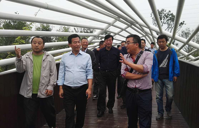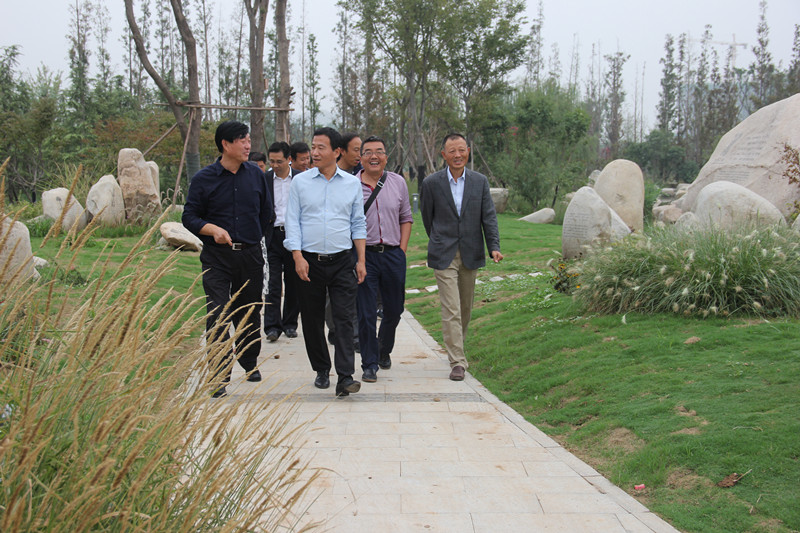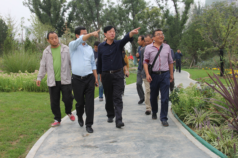 陕西省西安植物园试开园在即,9月27日下午,西安市曲江新区管委会主任陈吉利、副主任樊大可、建设局局长罗礼秦、曲江文投总经理李耀杰等领导前往新园区视察建设情况,西安植物园党委书记上官建国汇报了试开园筹备情况,副主任杜勇军、刘立成,总园艺师马延康等陪同。