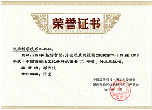 据悉,国家科学技术部于2016年组织开展了全国优秀科普作品推荐活动,共收到来自34个中央、国务院部门和36个?。ㄇ?、市、计划单列市和副省级城市)推荐的298部作品,共计626册图书,集成了近年来各地各部门创作的优秀科普图书及翻译的国外科普精品。本年度共有50部作品获得“2016年全国优秀科普作品奖”,由陕西科学技术出版社出版,西安植物园祁云枝研究员创作的植物科普散文集《植物智慧》名列其中。
