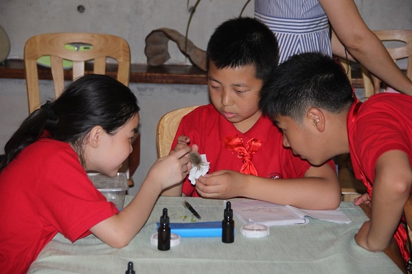 绿色之旅在具有科学性和趣味性的暖场游戏中拉开帷幕,代表们聆听了植物园工作人员对西安植物园的介绍,通过观察、实践操作等形式近距离深入了解各种植物。随后,孩子们分别参与了主题为《一粒种子的历险》和《苹果的秘密》科普小课堂,动手制作了果酸钟表、种子画及生态微景观瓶,学习了植物科学知识??纬探崾?,少先队员们以小队为单位,以实践任务为主线,寻找各类特色植物,完成“植物寻宝”任务。
