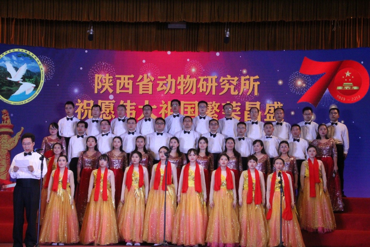 西安植物园的表演在园主任岳明教授的开场白中开始,岳主任深情的回顾道:“2019年既是新中国和中科院成立70周年,同时也是陕西省西安植物园成立60周年,植物?;?、科学研究、科普教育,三管齐下,联创佳绩;国际标准、西北一流、三秦特色是我们奋斗的目标,今日欢聚一堂,放声高歌,捧出火热衷肠,唤起报国壮志”。合唱队员用深情的歌声表达了对祖国的无限热爱和对实现中国梦的无限憧憬。