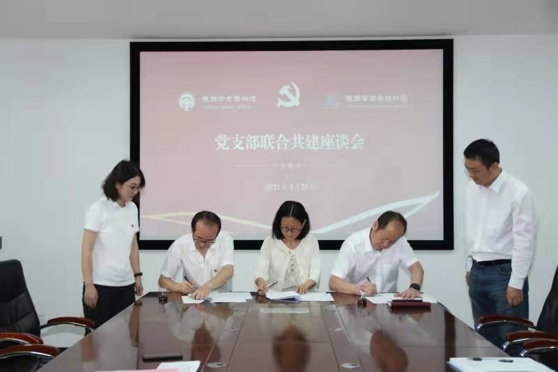 为深入开展党史学习教育,进一步发挥支部党建引领优势,激励广大党员职工学党史悟思想办实事开新局,迎接中国共产党建党100周年,5月25日,陕西历史博物馆第四、第五党支部与陕西省西安植物园综合党支部召开了“连点促党建,结对促业务”支部共建座谈会,同时举行了“学党史 担使命 践行绿色发展理念”主题党日活动。