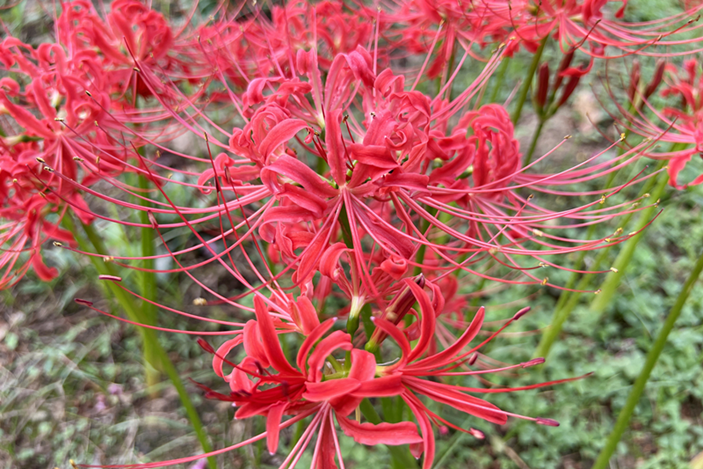 彼岸花(Lycoris radiata)学名石蒜,石蒜科石蒜属多年生草本植物。彼岸花通常指的是红花石蒜,又名曼珠沙华(Manjusaka)。白色彼岸花指的是乳白石蒜,又名曼陀罗华(Mandarava),而黄花石蒜不能算是真正意义上的“彼岸花”,它是彼岸花的近亲,也是另一种著名的观赏花名为“忽地笑”。忽地笑和彼岸花十分相像,但是花期不同??粕?、白色的花虽然不叫彼岸花,但也是石蒜属大家族的一员。(观赏地点:百卉园)