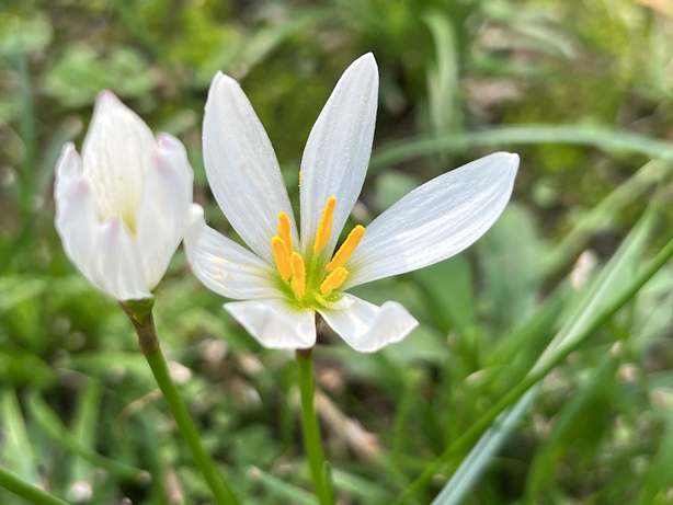 葱莲(Zephyranthes candida)石蒜科葱莲属,多年生草本植物。原产南美。葱莲的叶子狭线形、亮绿色,挺拔如葱管,花形似莲花,故名葱莲;又因为葱莲花开似兰花,故也称葱兰。但是葱莲既不是“葱”,也不是“莲”,更不是“兰”。(“葱”为百合科;“莲”为睡莲科;“兰”则为兰科。)葱莲的花茎中空,花单生于花茎顶端,花白色漏斗状,外面常常带有一丝淡红色,就像少女脸颊上的一抹腮红;雄蕊有6枚,乖乖地围成圆圈站好,花药鲜黄色,在纯白色花瓣的衬托下,显得娇美无比。(观赏地点:百卉园)