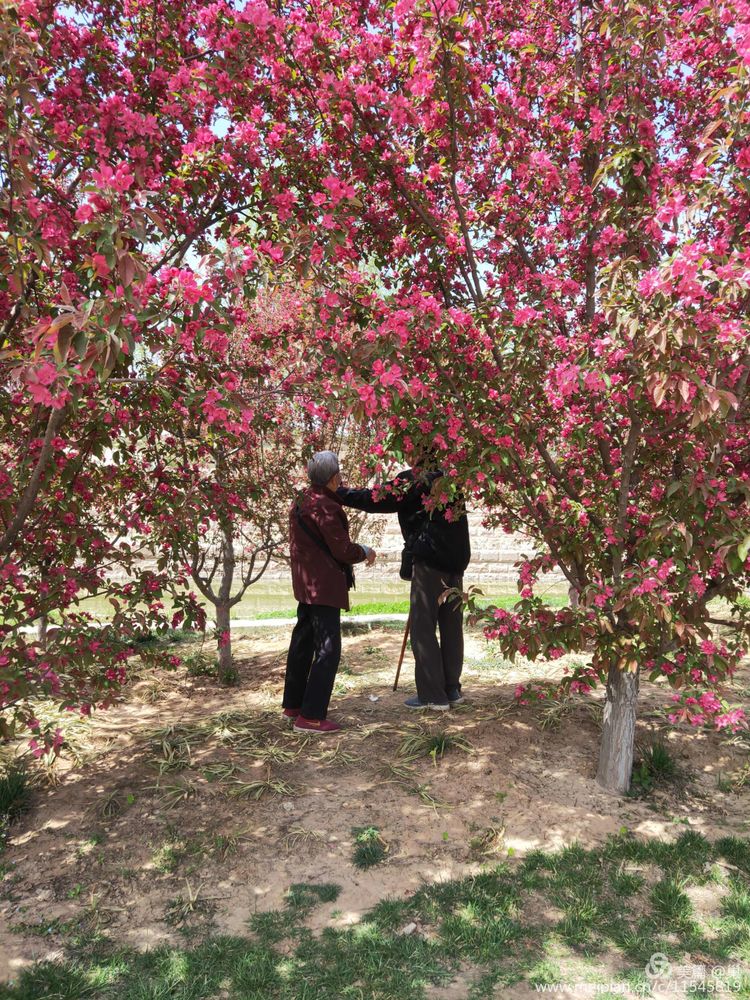 还未及触摸黄莹莹的迎春花,一片桃林便又将人裹挟。桃林中,两个步履蹒跚的影在花间隐现,偶尔听到喃喃之语,走近些,一位老太太再给拄着拐杖的老头拍照片,动作都很迟缓。老头还不停指挥着老太太,变换角度,换拍照片。我笑望着林间的他们,此刻这片桃林真的只有他们,掩映花间,怡然自得。春,是属于任何热爱它的人,就像生活属于热爱它的人一样。我侧身将自己也渐送入这桃林里,并不是要打扰他们,而是希望自己是不是可以有用给他们合个影,毕竟这样的日子于他们,还有几何?他们看到了我,老太太让我帮忙给老头拍照,说她视力不好看不清?!澳悄舱竟グ桑腋忝桥恼藕险??!蔽医庸种械氖只?,拄着拐杖已经摆好姿势的老头站在一棵桃树下,有点一本正经,个头不低,年轻时也是个蛮有精神气的人?。±贤氛泻衾咸?,满头银发,一脸和蔼,个头不高的她摆摆手拒绝了,说老了不好看了。尽管老头看上去有些遗憾,却并不在勉强老太太。我完成了任务还过手机打了招呼转身离开,还是不去打扰他们的好。我弯腰往前,穿梭在桃枝间走了一段,这才直起腰来再看桃花真颜,名不虚传,远观近看它都那般迷人,桃花朵朵,蜜蜂忙不迭迟一头扎进去,触触这朵,碰碰那朵,不再是坐怀不乱的柳下惠了。忙乎得痴迷,忙乎得贪婪,薄薄的翅在阳光下透亮透亮的,一头扎进花心,空留屁股在外头。哈哈,花乱蜂心!路边有孩子喊叫:“好多的蜜蜂??!”蜜蜂哪顾哪管,我那么近站在它们面前都全然不知,又怎会被吵到!