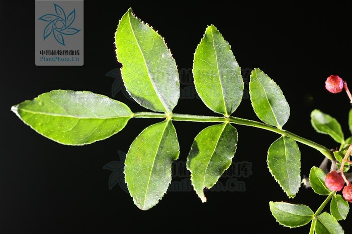 花椒(Zanthoxylum bungeanum Maxim.)芸香科花椒属,是我国原产的一种干、枝、叶、实具浓郁辛香的落叶小乔木?;ń吩谥泄延谐角甑睦?,根据产地的不同,“椒”在汉朝时已经有了蜀椒和秦椒的区分。其果实大如赤豆,果皮紫红色而皱,果皮上凸起一粒粒饱胀的油囊,芳香精油充盈其中,复合的萜烯类化合物正是清新香气的来源。很多人会觉得花椒有一股清香的柑橘味,这是因为花椒同柑橘都是芸香科的植物。摘下一片花椒叶,对着光看看,就会发现叶片上有很多半透明的圆点——油点。油点里储存了大量的挥发油(柠檬烯,芳樟醇等等),柑橘叶片和花椒叶片的浓烈气味也就由此而来。