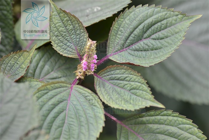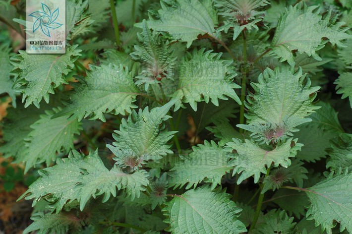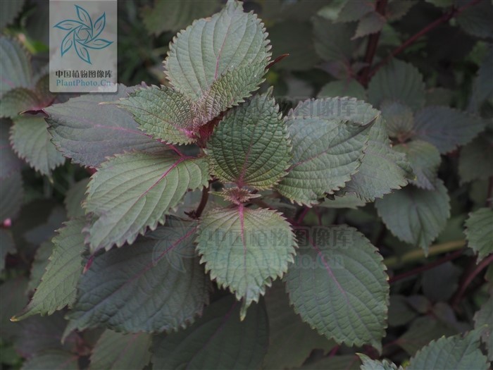 回回苏(Perilla frutescens var. crispa)其与原变种不同在于叶具狭而深的锯齿,常为紫色;果萼较小。)