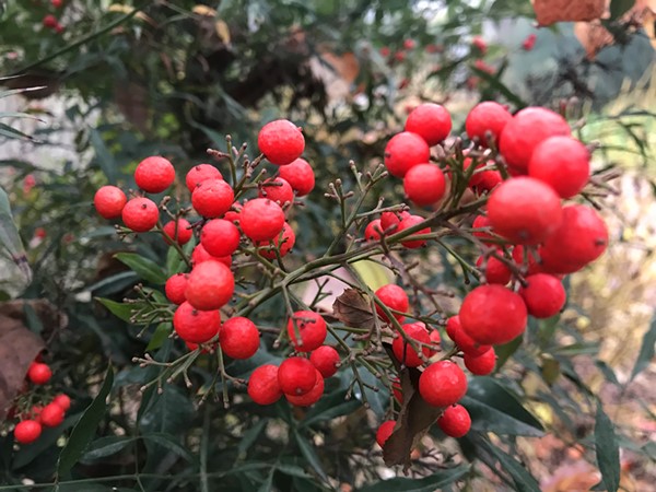 进入11月下旬后,冬天开始加快了脚步,迅速遗忘了秋的浪漫,在大风和冬雨的帮助下,开启了缩手缩脚的日子。然而,一抹艳丽的红色却格外的引人注目,宛如焰火一般绚烂和耀眼,点亮这沉闷的冬日,它——就是南天竹。