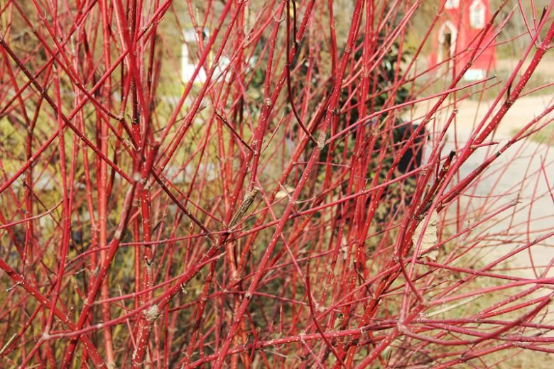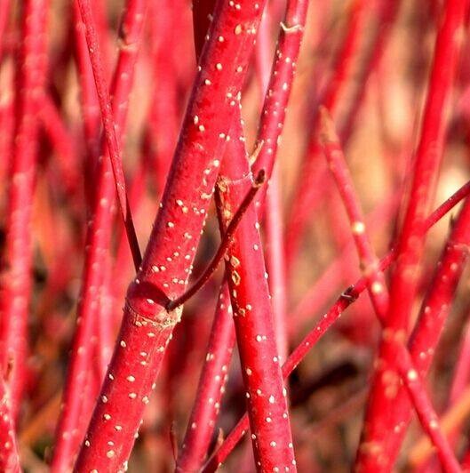 红叶红花都很常见,红色的枝干着实不多。其实无论哪个部分,植物呈现出来的红色都有一个共同的物质基础,就是细胞液里由葡萄糖变成的花青素,酸性的花青素会把红色的长光波反射出来,映入视线就是相应的颜色。