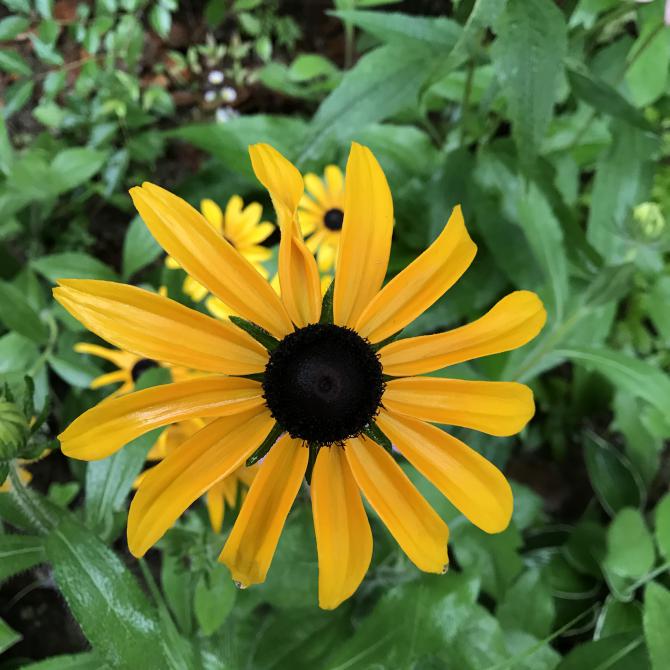 黑心金光菊(Rudbeckia hirta)又叫黑心菊。菊科金光菊属、一年或二年生草本,原产北美。黑心金光菊的花朵一般较大,花瓣呈闪耀的金黄色,颜色鲜艳如同梵高的向日葵,花蕊为深棕甚至黑褐色,乍一看,宛如一双炯炯有神的眼睛,因此也被人们称为“爱尔兰的眼睛”。