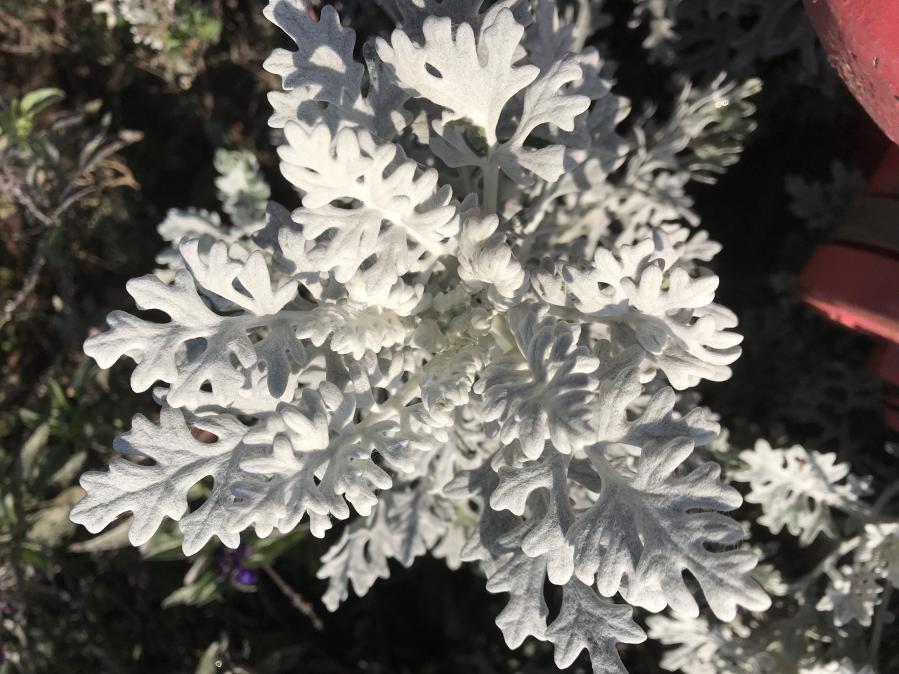 银叶菊(Senecio cineraria)菊科千里光属,多年生草本植物。原产于地中海地区。银叶菊又叫雪叶菊,无论是银叶菊还是雪叶菊,针对的都是它那特殊的叶子颜色。银叶菊的叶子为1-2回羽状裂,正反面都有一层浓密的银白色绒毛,叶片质较薄,叶片缺裂。