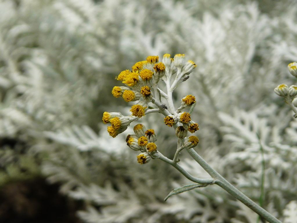 有一种植物,虽身为菊科,但并没有灿烂迷人的大花朵。它的花很小,花型也并不好看,开花时是一丛丛艳丽的明黄色。全身银白色,叶片形状就像冬天的雪花一样美,生长在花草中,大老远就能认出它来。它就是花中雪精灵——银叶菊,绝对会让你过目不忘。