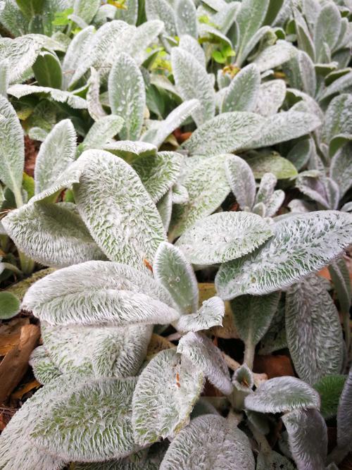 绵毛水苏(Stachys byzantina)唇形科水苏属,多年生草本。原产巴尔干半岛、黑海沿岸至西亚。绵毛水苏的叶子呈椭圆形,叶片厚且表面覆有一层灰白色丝状绵毛,叶色呈清冷的银白色,叶质像天鹅绒一样柔软。在阳光照射下,叶片会吸收一定的温度,用手摸上去,幸福感油然而生,真的像是在撸猫撸狗一样,软软的,让人不忍放手。小编第一次见它的时候就忍不住摸了很久,它还有一个名字,叫“Lamb's-ear”(羊耳朵),是不是立刻就有画面感了?