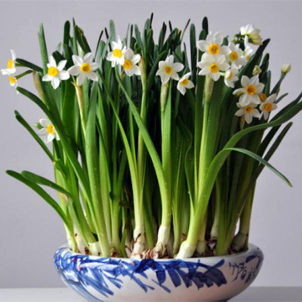水仙(Narcissust azetta var.chinensis)石蒜科水仙属、多年生草本植物。水仙,花如其名,得水如仙。把它放入清水盆中,适当光照,便能吐翠含芳,简朴素雅至极。在中国已有一千多年栽培历史,为传统观赏花卉,是中国十大名花之十。古人认为,在百花凋零的“岁寒三友”中,松、竹有叶而无花,梅有花却无叶,只有水仙花叶具备,且色、香、味、韵俱佳。人们常用它庆贺新年,作“岁朝清供”的年花。细心的小伙伴们不难发现,几乎每年央视春晚嘉宾席的每张桌子上都会有水仙花相伴。因其谐音“谁先发”,又带有“仙”字,甚为吉利,广受大众喜爱。