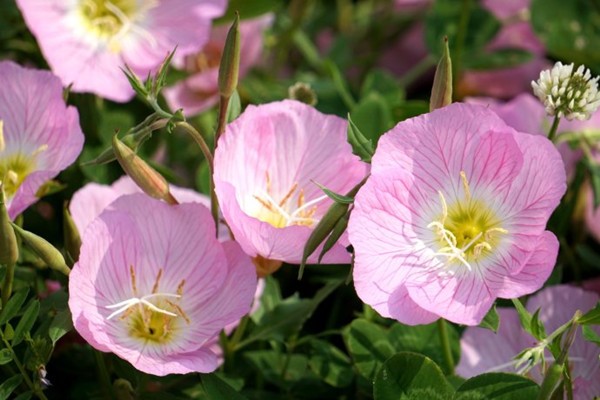 月见草属的植物,大多夜晚开放,白天闭合,有见月方开之意,故而得名月见草。美丽月见草却与众不同,它白天黑夜皆开放,但是通常在破晓之前,它会开放得最盛,而在午后烈日炎炎之际,美丽月见草的花会倾向于闭合。