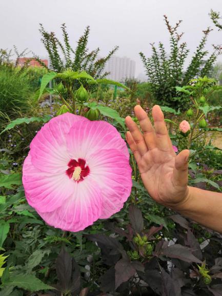 随着入夏的氛围浓厚,花儿也禁不住高热的天气日渐稀少了,但西安植物园却盛开着一种会变色比脸还大的花——芙蓉葵。