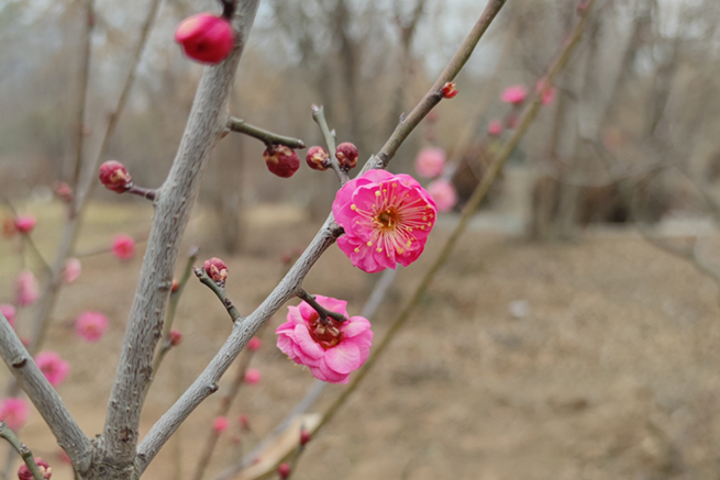 “梅开百花之先,独天下而春”。近日,梅花的悄然绽放给沉寂已久的植物园带来了一丝色彩与活力??醋拍遣悴愕ǘ?,漫过了冬的严寒,迎面而来,在寒风下肆意舒展着身姿,堆砌出无限优雅。