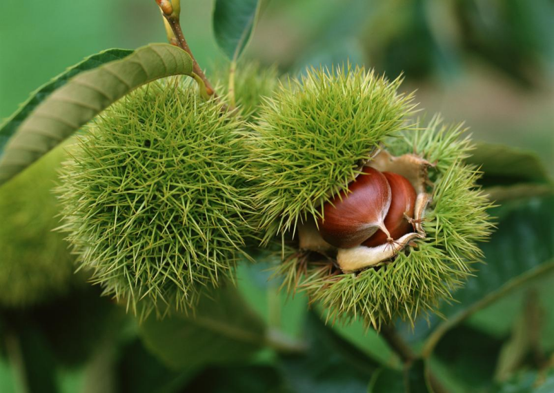 相信很多人都采摘过野板栗,其模样好似一只绿色的小刺猬。那是因为板栗除了有坚韧的硬壳外,还有一层密布尖刺的“壳斗”。这个“壳斗”其实是由总苞,也就是一类特殊的叶片发育而来的,里面包裹的每一个板栗,都是一个独立的小果子。成熟时,壳斗会十字而开,棕红色的栗子才会露出真身。也正因为板栗穿着布满尖刺的“外套”,才能更好地?;ぷ约旱墓?,让想吃它的动物,无从下嘴。不过,在很多人眼里板栗并不算坚果。因为坚果给人的印象是“香脆”,板栗却是“甜糯”。这是因为种子的脂肪含量越高,口感就越脆,而板栗富含淀粉,脂肪含量并不高。