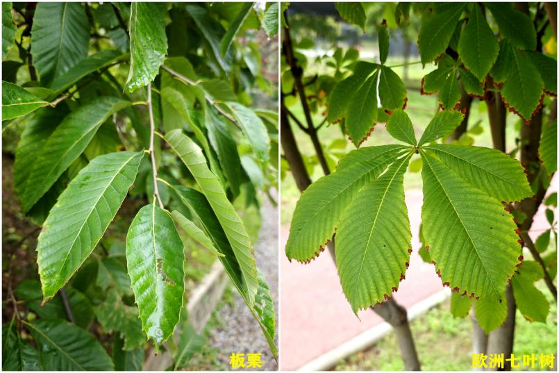 一:看叶子,板栗是一片一片的单叶在枝条上左右排队;而欧洲七叶树,树如其名,其掌状复叶通常有5~7片小叶。