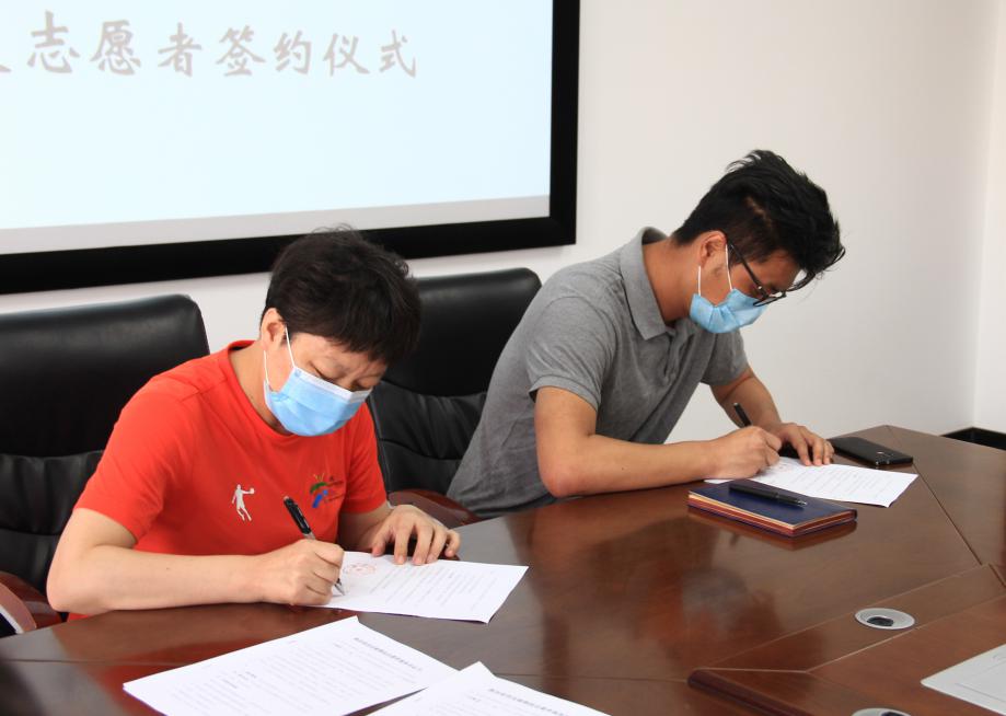 △西安植物园副主任韩桂军与志愿者代表任涛签订志愿者签约