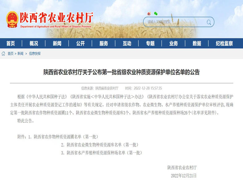 陕西省农业农村厅第一批省级农业种质资源?;さノ幻ス?/span>