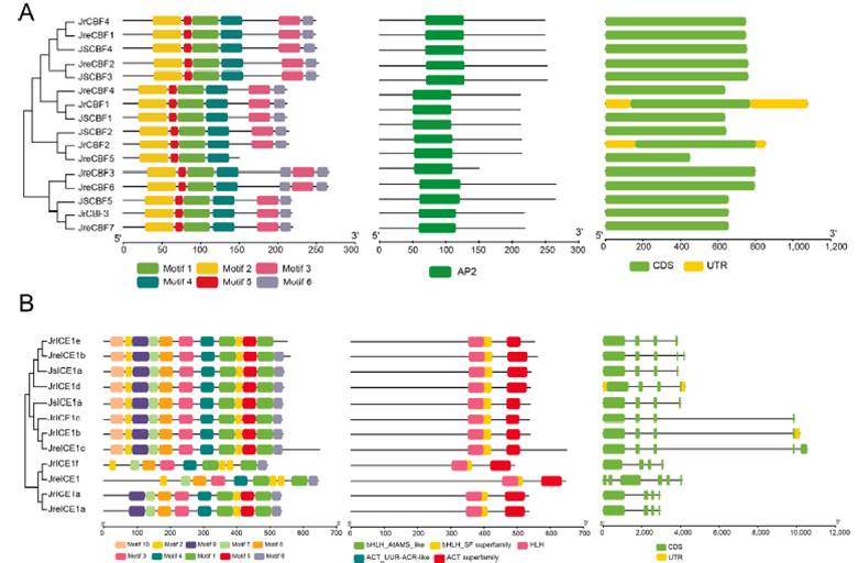 图1 不同核桃品种抗冷转录因子CBF和ICE基因家族分析