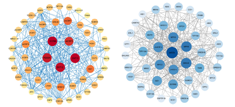 除此之外,该研究还对CBF和ICE基因进行了蛋白互作关系以及miRNA调控预测,且预测的miRNA在拟南芥中已被证明与寒冷、干旱、盐胁迫等非生物胁迫相关。该研究对于抗冷核桃品种选育以及分子育种提供了一定的理论意义。