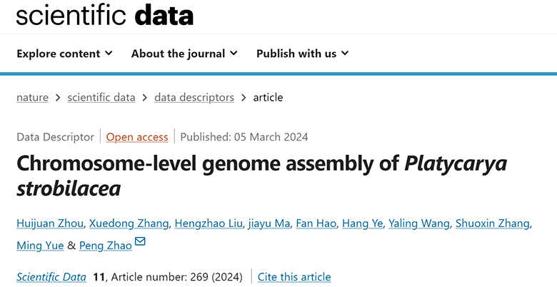 近日,陕西省西安植物园周惠娟博士以第一作者身份在学术期刊《Scientific Data》(IF=9.8003,JCR: Q1)在线发表了题为“Chromosome-level genome assembly of Platycarya strobilacea” 的研究论文。