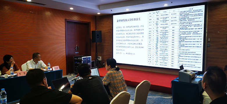 规范起草单位陕西省西安植物园副主任刘立成、研究员王亚玲、科研中心副主任路强强、助理研究员李仁娜,西安市城市管理和综合执法局原副局长吴雪萍、陕西厚地生物科技有限公司总经理宣世荣、西安市绿化管护中心正高级工程师卫天星、西安市园林研究所高级工程师张亚玲、西安市园林生态集团高级工程师刘双月等参加了本次审查会。