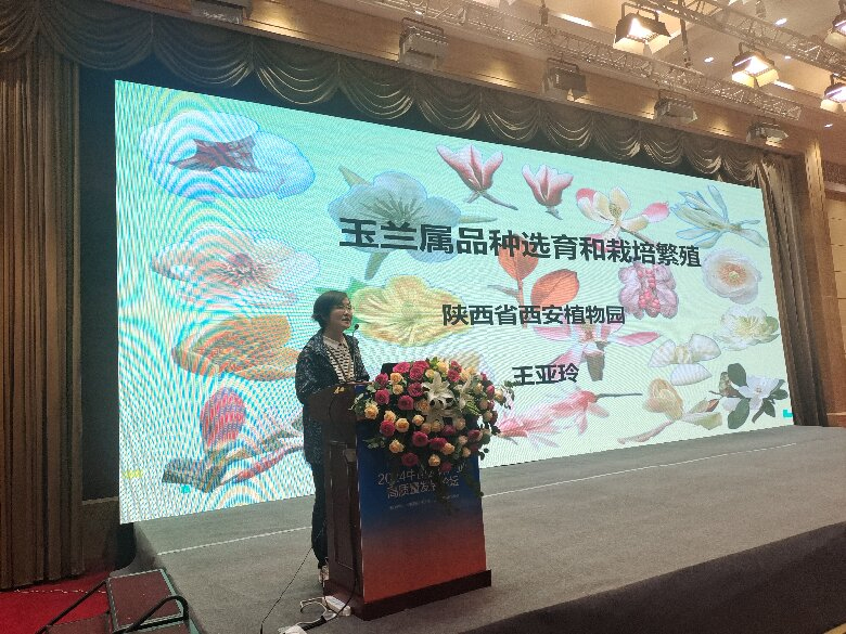 王亚玲研究员在11日举办的“2024园林植物新品种开发及应用研讨会”做了题为“玉兰属品种选育和栽培繁殖”的大会分享。