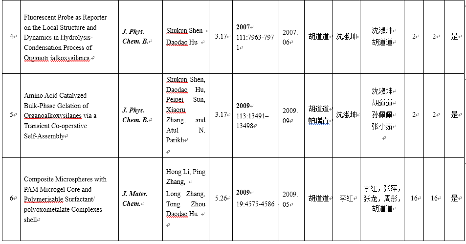 (1)在有机硅氧烷水解缩合分子簇集行为研究方面成果得到广泛关注与肯定。国家杰出青年基金获得者,吉林大学无机合成与制备化学国家重点实验室原主任霍启升教授在Langmuir(2010, 26 (13): 11421-11426)指出,直接引用了J. Phys. Chem B 2007.111,7963 :有关有机硅氧烷水解缩合产物分子簇集行为,有机硅氧烷水解产物可以形成类似胶束表面活性剂在水解质中形成分子簇集体,丙基取代有机硅氧烷水解产物由于较短链在溶液中以均相存在”。在进行含芘硅氧烷水解缩合分子簇集行为时,直接引用我们关于荧光探针在硅氧烷水解缩合体系中芘光物理行为的相关结果“已知芘激基缔合物发生是由于激发态芘基态芘分子之间相互作用产生,且这种作用依赖于芘分子间的方向和距离”