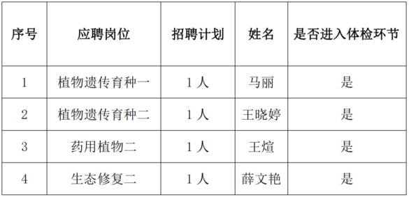 现将陕西省西安植物园(陕西省植物研究所)2023年公开招聘博士面试合格并进入体检人员名单予以公示。具体体检事宜另行通知。