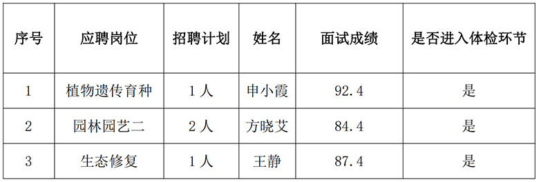 现将陕西省西安植物园(陕西省植物研究所)2023年公开招聘博士研究生(第二批)面试合格并进入体检人员名单予以公示。具体体检事宜另行通知。