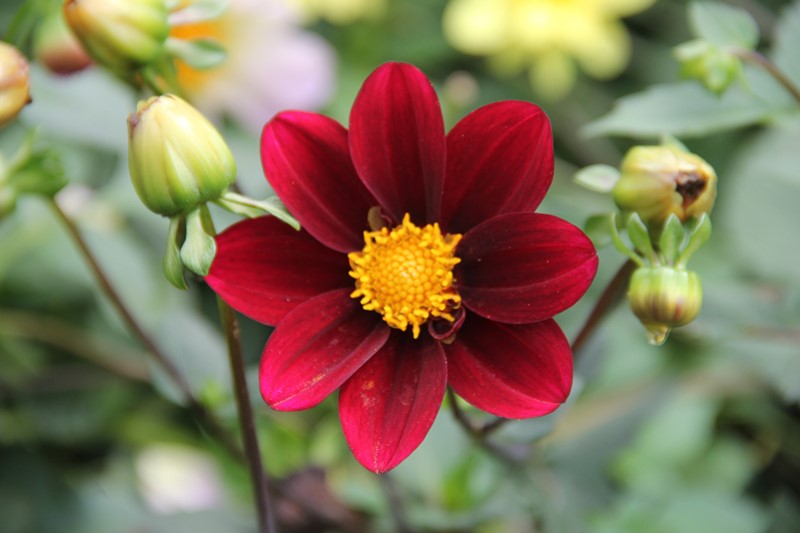本次花展主要以菊科花卉为主,展出地被菊、大丽花、波斯菊、硫化菊等花卉50余个品种3万余株。同时搭配各种时令花卉,如超级鼠尾草、一串红、鸡冠花等,依然延续秋季花卉园艺展览的模式,打造出一幅幅韵味独具的秋日美景,为游客带来一场别开生面的秋季花海主题展。秋季花展分为室外展和室内展,室外花展设有4大展区,主要分布在西大门、水景园东侧、百卉园、太极广场区域,让游客体验不同植物的魅力。位于西大门的“秋韵流芳庆华诞”大型主题花坛,彰显新中国成立70周年恢宏气势,普天同庆的同时也让游客身临其境,感受秋天的味道,并送上美好祝福。水景园东侧,集中展示地被菊、大丽花等需要充足阳光的“向阳花卉”,加上周围的树木、风车及充满童趣的景观小品,形成了一处独特的花海景观效果。百卉园区域种植了7个色系的大丽花、超级鼠尾草等各色花卉依道路地势交织成一片花毯,不同品种的花草随风拂动,错落有致,尽展秋日风姿。