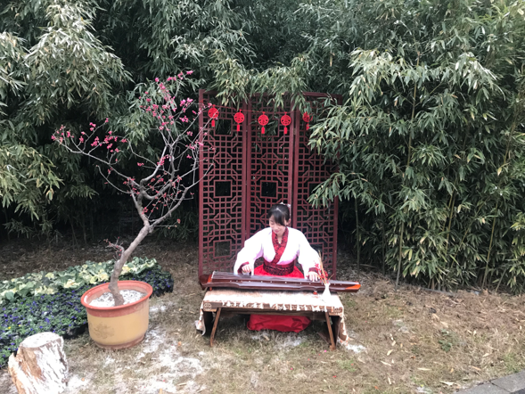以诗喻景,最大限度还原诗中景致,其中“梅花月下听瑶琴”、“梅边吹笛”更是为游客准备了古琴、笛子等道具,使游客在赏梅吟诗的同时身临其境,体验梅花独特的东方韵味和古典美。同时,还展出梅花知识科普展板,将梅花的特性、类型、生长条件、文化寓意等知识做了详尽的介绍?;ㄕ蛊诩?,园区还为游客朋友们准备了“梅开五福”、“赏梅祈?!?、“赏梅猜谜闹元宵”、“花好月圆”等一系列丰富多彩的科普文化体验活动。游客朋友们既可在梅海之中徜徉,赏梅色、闻梅香、品梅韵,又可以细细品鉴梅花盆景、领略中国梅文化的精髓。