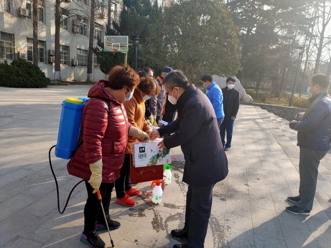 为定时定点消毒的保洁人员送去慰问品