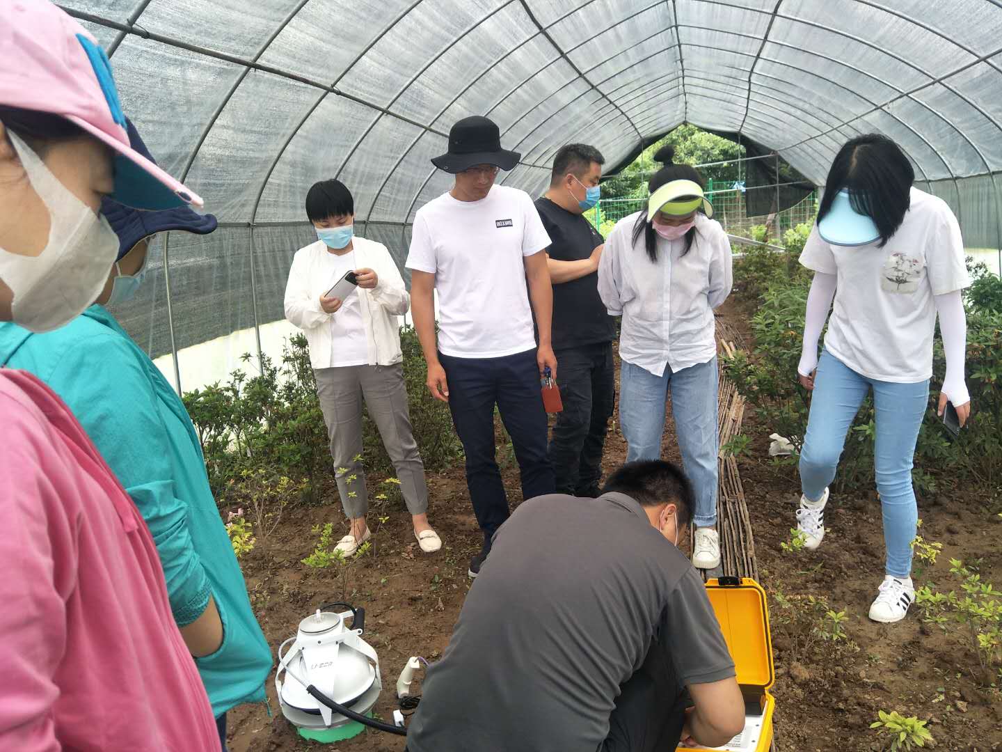 设备工程师到户外指导LI-8100A 土壤碳通量自动测量系统实地操作
