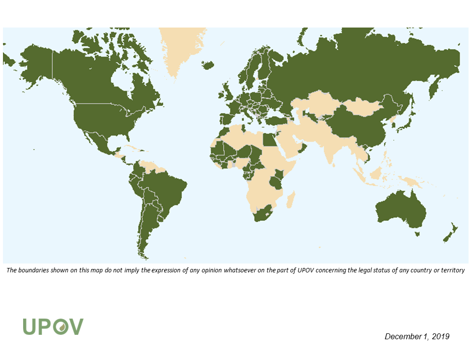 国际植物新品种保护联盟(International Union For The Protection Of New Varieties Of Plants),简称 UPOV,是一个政府间的国际组织,总部设在日内瓦。UPOV是依据国际植物新品种?;す?“UPOV公约”)建立的。UPOV公约于1961年11月由比利时、法国、联邦德国、意大利和荷兰在巴黎签署。至今有成员国76个,包括93国家。UPOV的职责主要是协调和促进成员国之间在行政和技术领域的合作,特别是在制定基本的法律和技术准则、交流信息、促进国际合作等方面发挥着重大作用。成员国根据国际植物新品种?;す脊娑ǖ?/font>原则,分别对植物新品种授予品种权。