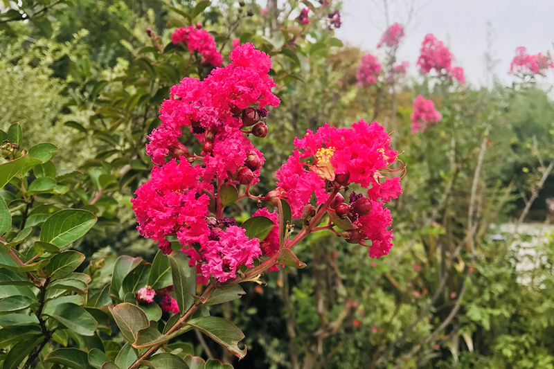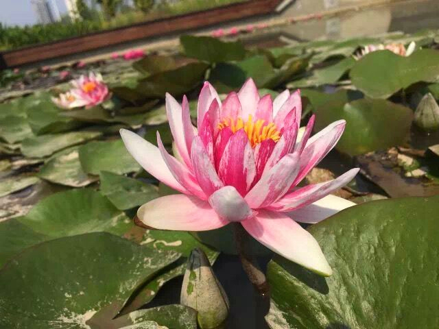 除了荷花、王莲外,水景园中的“花中睡美人”睡莲也已进入盛花期。潋滟的水光中,一朵朵或黄、或紫、或玫红、或粉色的娇嫩花朵浮在水面,在一池碧水中宛如清新脱俗的少女睡卧在碧波之上。为了能让市民游客更充分地领略睡莲之美,园区还将展出与常见睡莲开花习性相反的夜间开花睡莲品种‘印度红睡莲’、‘埃及白睡莲’、‘红色闪耀’、‘泰国粉’等。同时,园区内的木槿、紫薇、芙蓉葵、月季、马鞭草等也花开正盛。