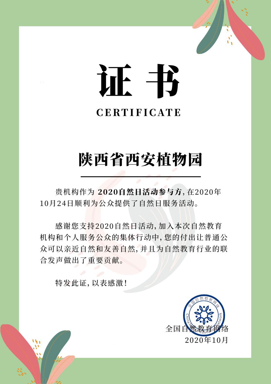 此次活动受到了全国自然教育网络的充分肯定,并授予陕西省西安植物园荣誉证书。自然日活动已经结束了,而自然教育的工作还在继续。今后,我们希望让更多的公众接触与了解自然教育,每一天都能享受到自然带来的美好与幸福!